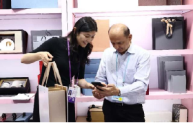 本次節(jié)日禮品展區(qū)設(shè)計(jì)別出心裁,產(chǎn)品花樣百出,其中最引人矚目的當(dāng)數(shù)“ALIC瓶子禮品包裝袋”。該系列包裝選用環(huán)保材質(zhì),表面覆亞光膜,觸感細(xì)膩且具備良好的承托力。設(shè)計(jì)上以典雅紫色為底,搭配精致的花卉與靈動(dòng)蝴蝶圖案,品牌“ALIC”標(biāo)識(shí)采用燙白工藝,簡(jiǎn)潔醒目。瓶身設(shè)計(jì)與手提袋圖案相互呼應(yīng),整體風(fēng)格協(xié)調(diào)統(tǒng)一。蝴蝶意象不僅傳遞出“蛻變與新生”的美好寓意,也呼應(yīng)了ALIC品牌持續(xù)創(chuàng)新、不斷突破的設(shè)計(jì)理念。據(jù)悉,該系列產(chǎn)品憑借其高顏值與實(shí)用性的結(jié)合,已吸引多國(guó)采購(gòu)商駐足詢價(jià),部分客戶已進(jìn)入訂單洽談階段。