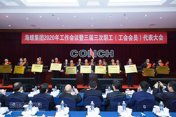 只爭(zhēng)朝夕加油干,不負(fù)韶華再向前。2020年元月10日,海螺集團(tuán)2020年工作會(huì)議暨三屆三次職工(工會(huì)會(huì)員)代表大會(huì)在總部召開(kāi)。來(lái)自集團(tuán)部室及直屬子公司、海螺水泥股份公司、國(guó)貿(mào)集團(tuán)公司、海螺型材股份公司、海螺投資公司等各產(chǎn)業(yè)板塊的400余名職工代表、工會(huì)會(huì)員代表、工作會(huì)議代表激情滿(mǎn)懷、齊聚一堂,共商發(fā)展大計(jì),推動(dòng)企業(yè)高質(zhì)量發(fā)展再上新臺(tái)階。