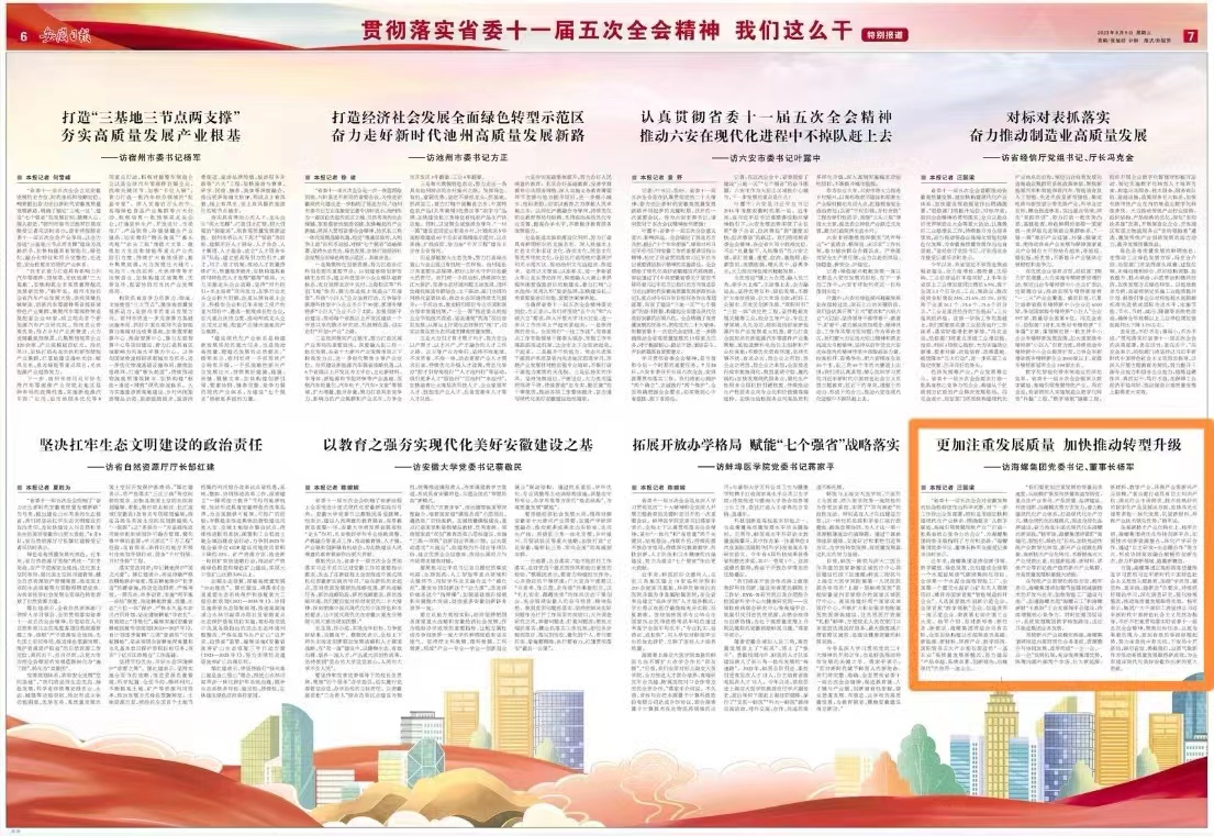《安徽日報(bào)》貫徹落實(shí)省委十一屆五次全會精神特別報(bào)道,專訪海螺集團(tuán)黨委書記、董事長楊軍。